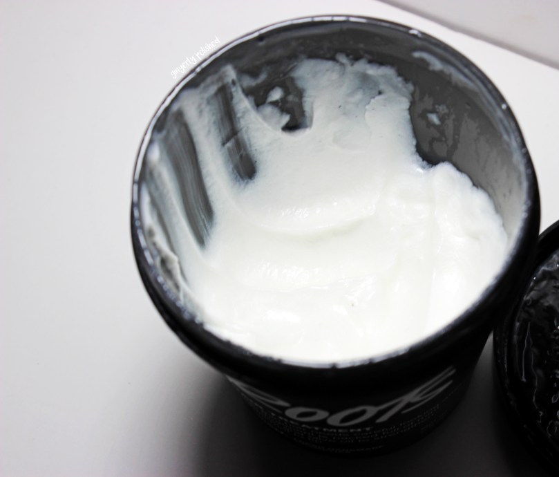This is the ‘Roots’ hair treatment. It contains olive oil and honey to soften and hydrate the scalp, as well as peppermint and spearmint oils to give a tingly cooling sensation to your scalp.