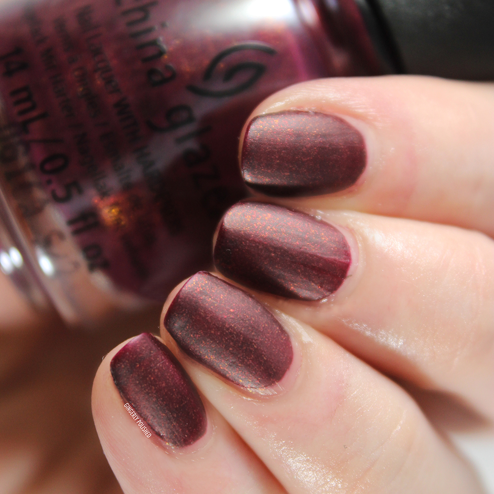 As with matte polishes, of course it dries more quickly, but not so quickly that you have no time to work with it and smooth it out. I know there have been cases of China Glaze mattes specifically drying so dang fast you had to paint them on in super-speed. I’m glad to report this is not one of those. (Looking at you, Combat Blue-ts).