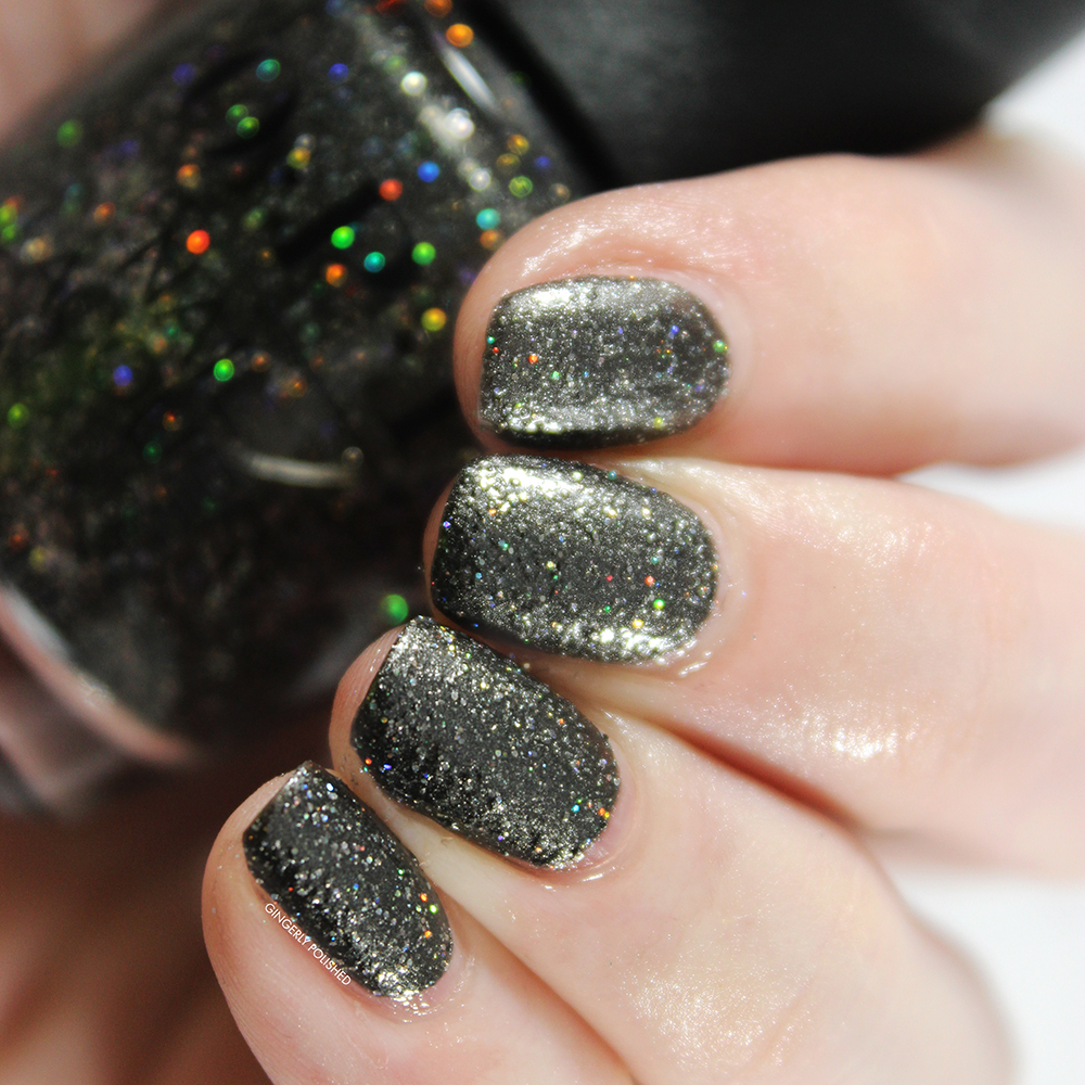 The last shade of the core collection is ‘Heart and Coal’. This is a black base with tons of silver shimmer as well as holographic scattered glitter. This is a thicker formula, as there’s a ton of larger glitter all throughout. The 1st coat had a few streaks to it, but a 2nd easily covers.