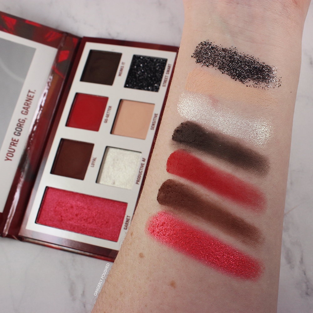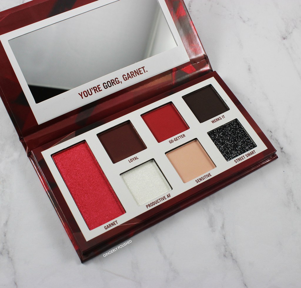 Since they just released the palette for February, it’s a great time to talk about January’s release. This is the ‘Garnet’ palette for January, of course, matching the birthstone of Garnet. It features a heavily red themed color story, and it was just so cute and I couldn’t resist. These retail for $9, so they’re super affordable and just too easy to add into your cart. I gave you swatches, eye looks, and then a review on the formula! I like to be super detailed, so let’s just get right into it!
