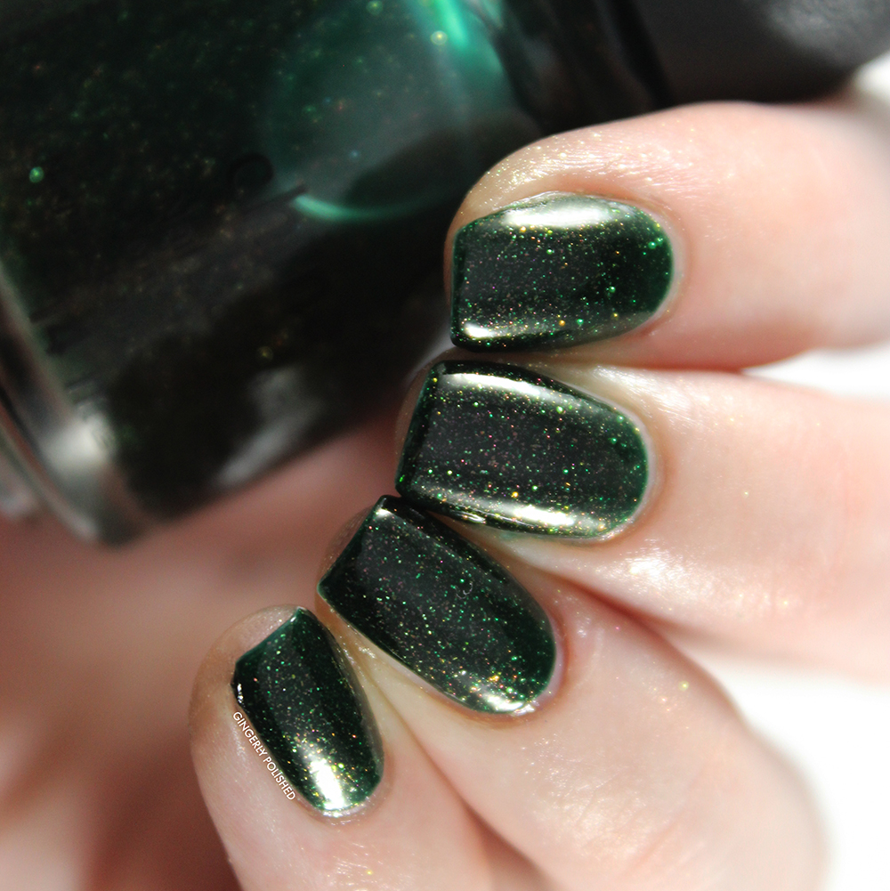 Up next is ‘Emerald Magic’. This is another deep green jelly base, but cool-toned and forest green. And this one has scattered glitters all throughout. Again, since it’s a jelly, its more sheer and uneven. I did end up doing 3 coats for this one, as I noticed some patches and it continued to deepen up with that 3rd coat. But I think most people will be good with 2 – it’ll depend on your application and thickness of coats.