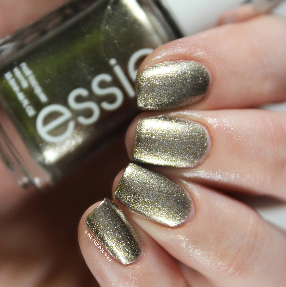 Next up we have ‘Under Locket & Key’. This is a gorgeous tarnished, almost olive green, lead gray shimmery shade. It’s quite hard to describe this color, and it can shift depending on different lighting! Super unique and I love it (I cannot at all tell you how this relates to Valentine’s Day, but I don’t give a heck I’m just here for the color). And we continue on with the great formulas with this one – 2 easy and smooth coats here and no issues. The wide brushes also make it so easy to apply as well!