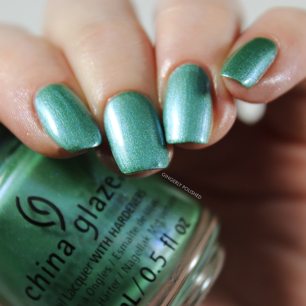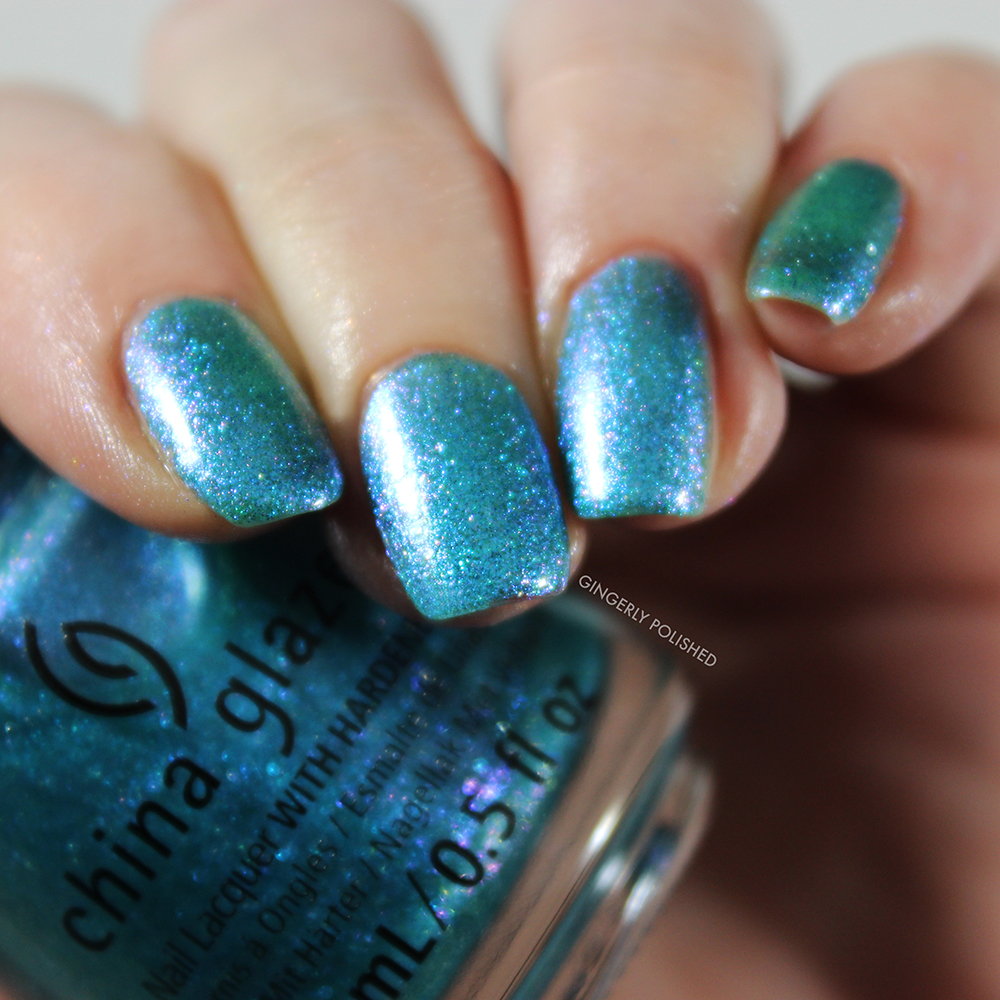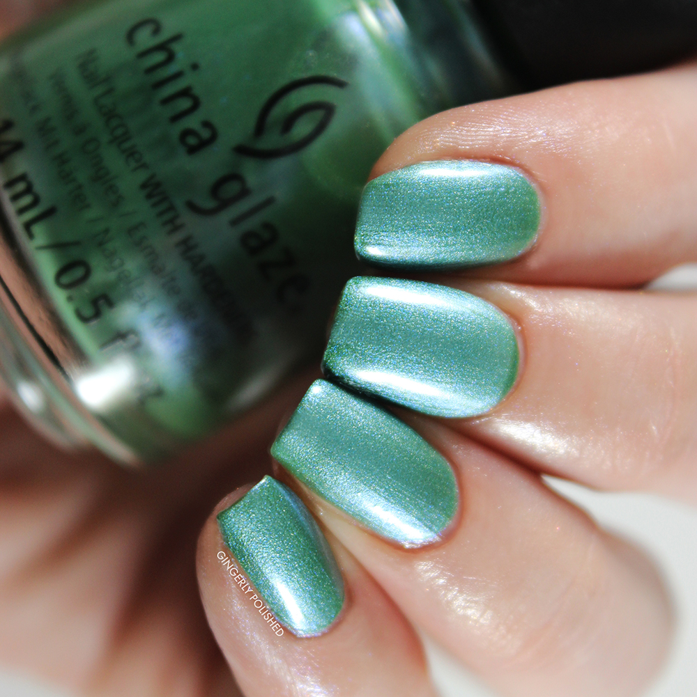 Up next we have ‘Planted & Enchanted’ and of course, it’s the magical, mystical green shade of the bunch. It’s almost hard to describe and nail down one color for this one. It’s an almost jade, a teal-toned green base with tons of bright blue shimmer to it.