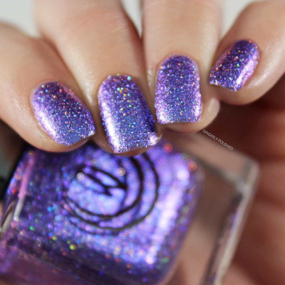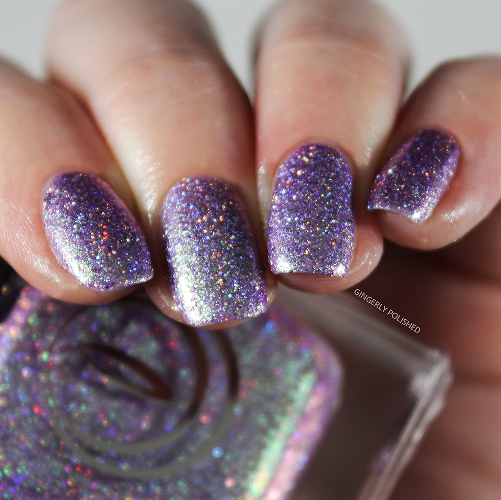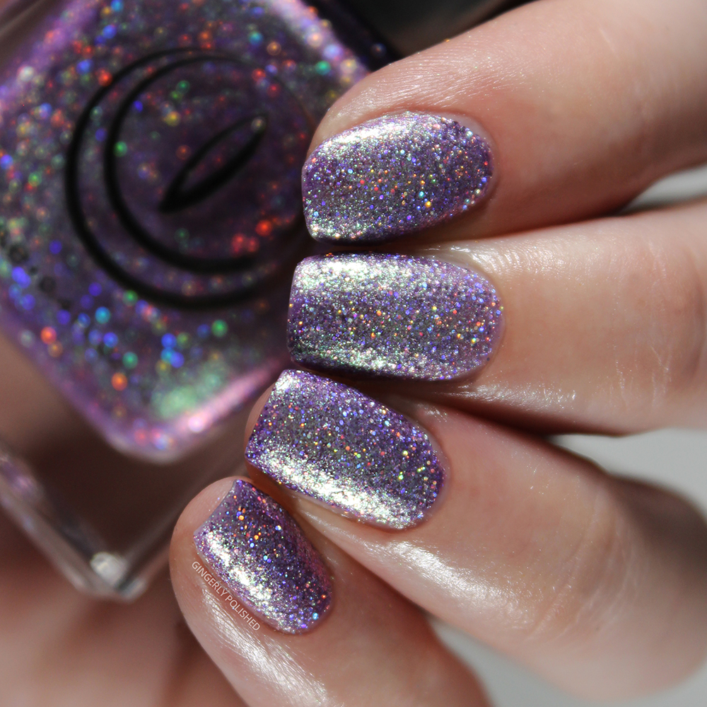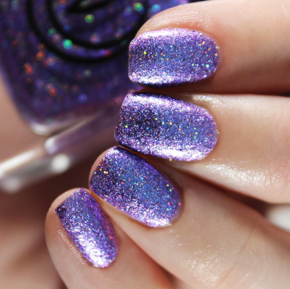 Now we have our two purples of the collection. This first one is ‘Serpent’s Tongue’, and it’s the lighter of the 2 purples, being a light lilac toned base that shifts to a bright minty green, all packed with that holographic shimmer.