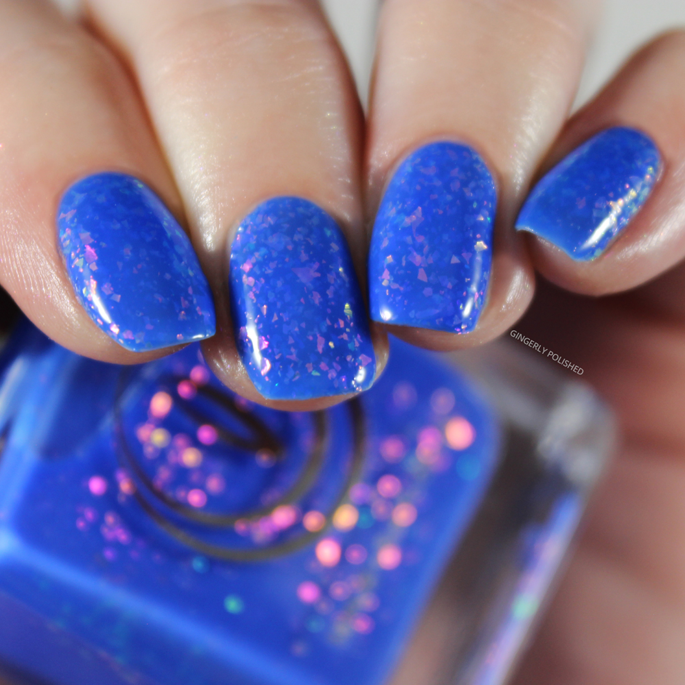 With that deeper color, it’s one of the more pigmented of the set, so it’s easily opaque with 3 coats. I do love the deeper shades, as the flakes just contrast so well against them.