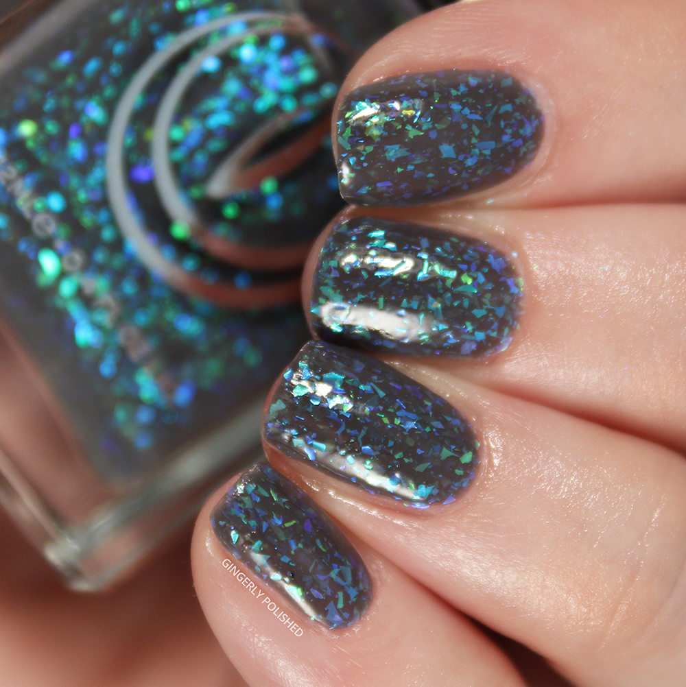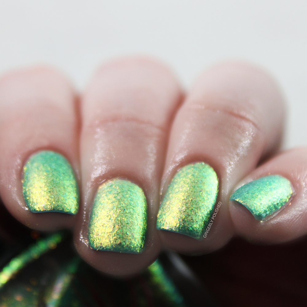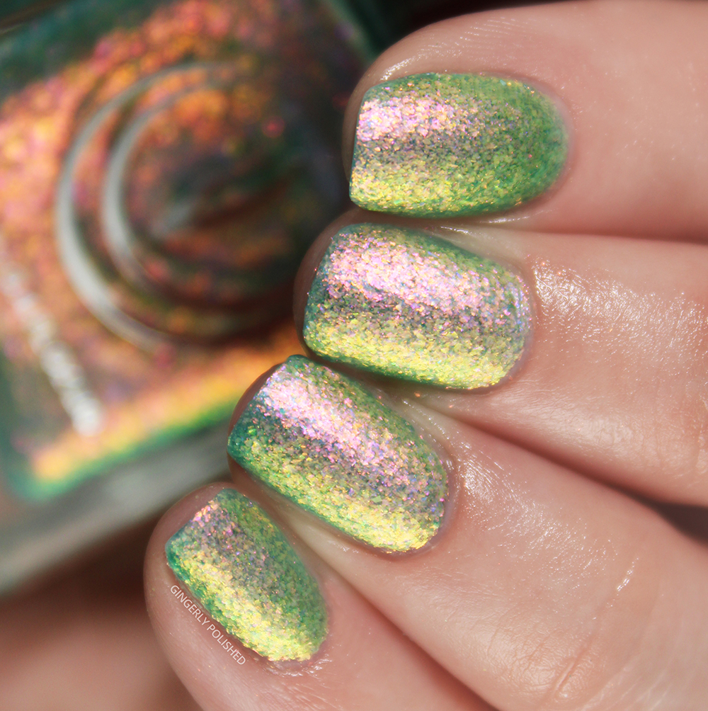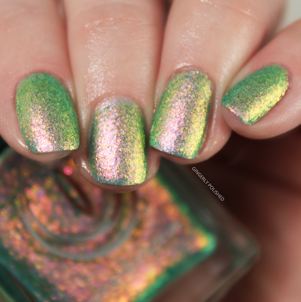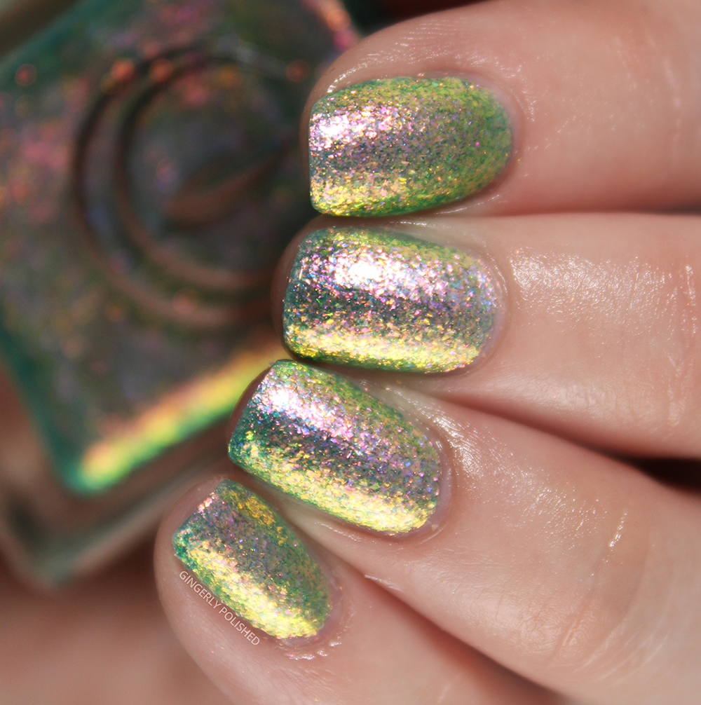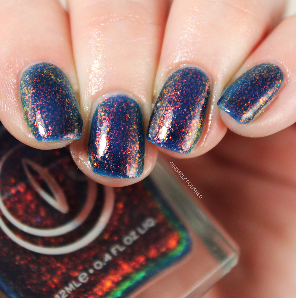 ‘Pangea’ is a deeper blue jelly base filled with smaller flakes than all the others. They’re just as shifty as all the others, and go from a deep green to a yellow all the way to a bright orange-red. They really pop against that deep blue base and I love the effect.