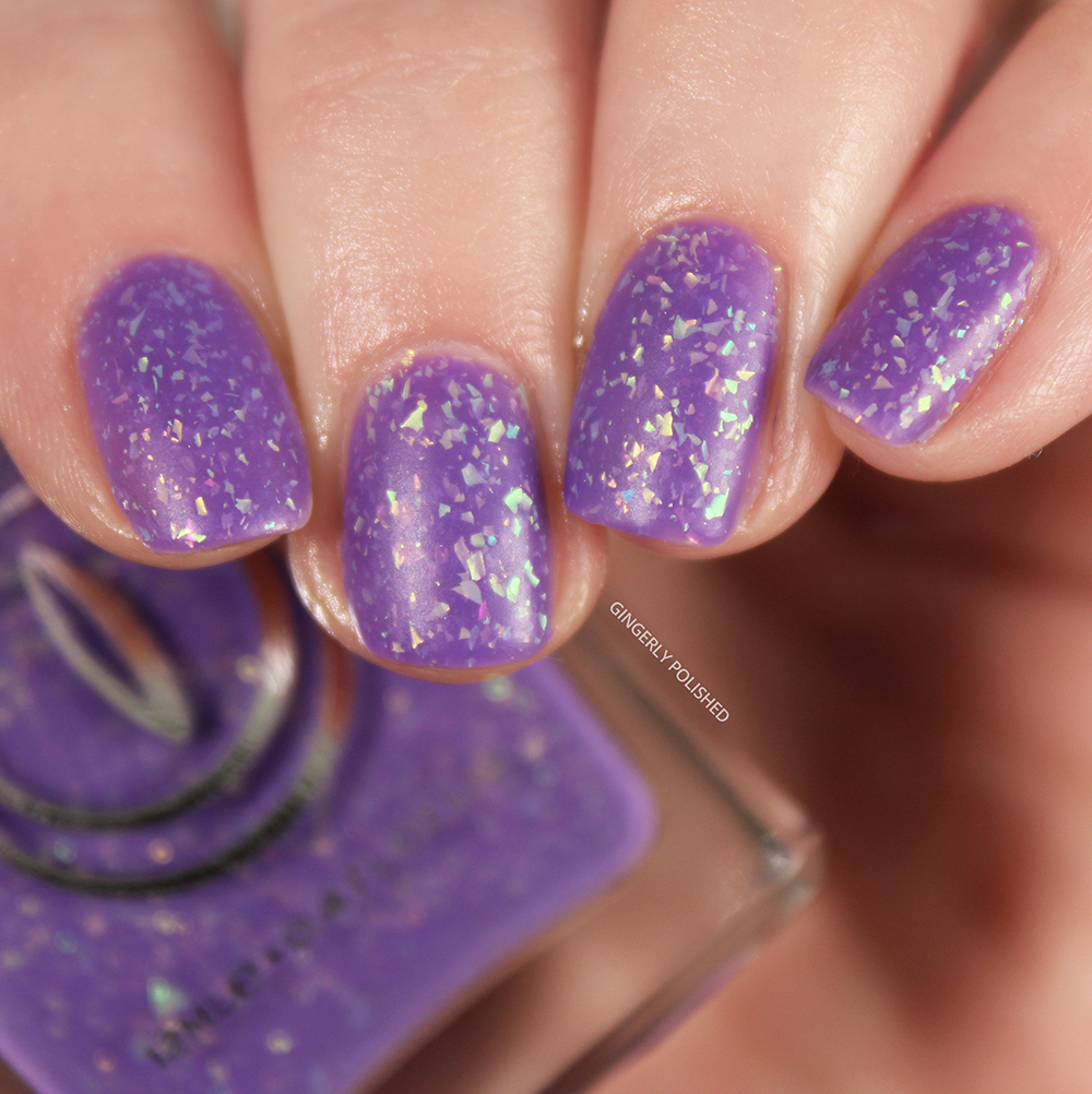 The name ‘Raawr’ gives me war flashbacks to Tumblr circa about 2011 – you all know what I’m talking about. This polish is a medium, warm-toned purple base filled with more of those iridescent shifty flakies.
