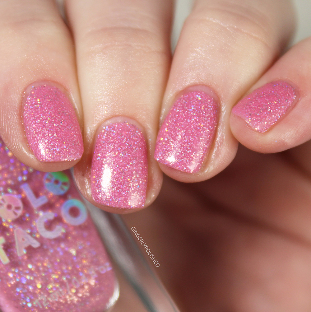 This was more of a true shimmer formula so it was more opaque than ‘Blush Money’, and I was able to get this shade opaque with just 2 coats. I do find Holo Taco’s formulas are thicker overall, but I’m one to love a thicker polish. I find that it just helps give more control on application, and helps with opacity. But of course if you’re not used to that, it can feel thick. I’ve never had issues with drying time versus other brands, so don’t knock it until you try it.