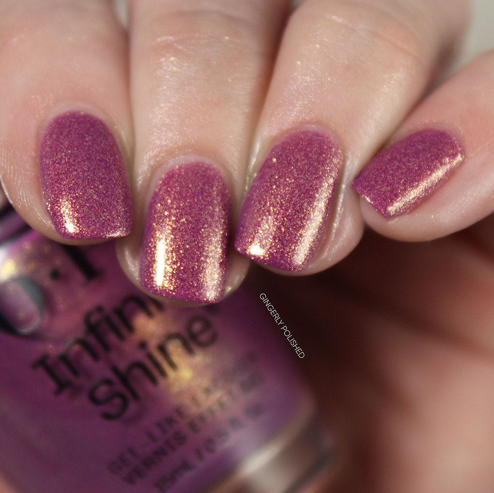 Now, what’s different about the Infinite Shine line, you ask? On their website OPI describes it as “Our shiniest shine ever in a long-lasting nail polish formula that delivers up to 11 days of gel-like wear.” So yes, it’s supposed to be nice and shinier and longer lasting than regular polish.