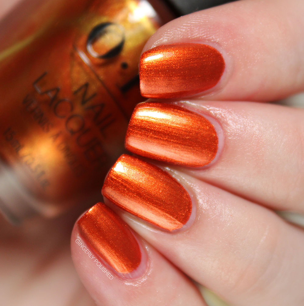 ‘Liquid Fire’ is a shade with another fitting name. This polish just feels like I dipped my hands in lava. (Anyone else ever have the urge to just touch lava when you see videos of it? I know I absolutely cannot but it just looks cool and gloopy). Anyways, this is a bright pumpkin orange with a golden shimmer running throughout it.
