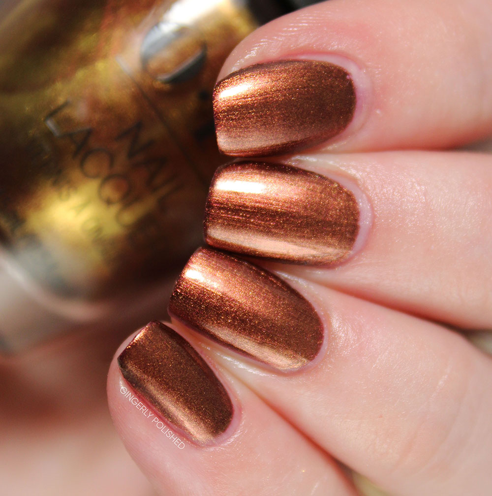 This one was so pigmented and it was practically opaque in just 1 coat. I always do 2 coats for any polish, so that 2nd comes in and smooths out any texture showing from my ridges and really brings out the shine. And that shimmer gives it the most metallic finish of all.