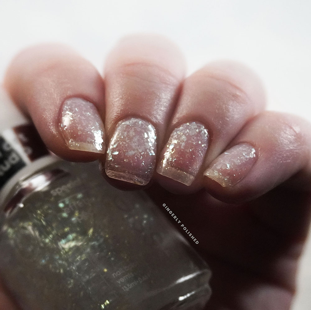 This first one that starts us out is a different finish than the other 3, the one different friend of the group. It features larger iridescent flakes instead of a smoother shimmer. This is also the only one with a fully clear base, so it’s the one that won’t change whatever base you put it over, instead only adding some points of sparkle.