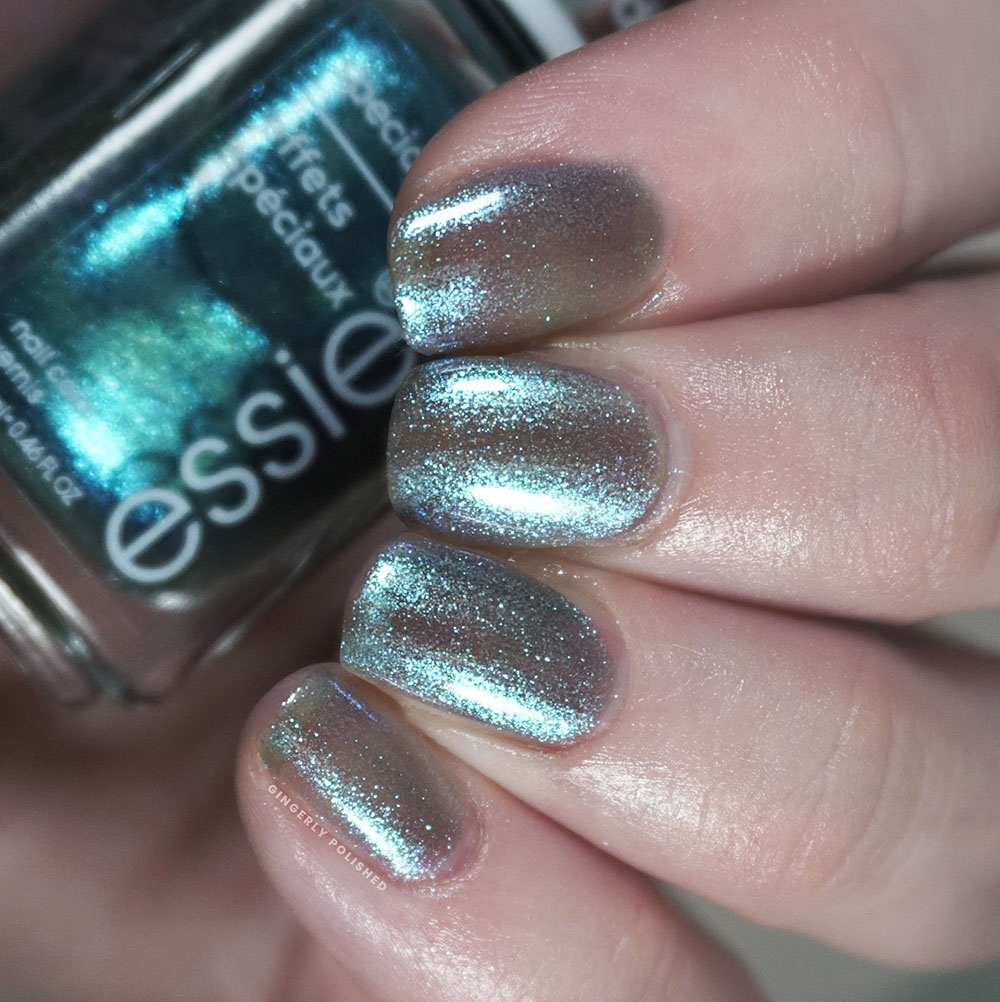Now we get on into the 4 special effects polishes. These are part of Essie’s Nail Art Studio line, which originally released last year in 2024. That drop contained 18 different polishes – 9 sheer jellies (which I reviewed here) and 9 “Special Effect” polishes (coming to the blog as well). These special effects toppers are all summarized as “fusing duochrome flips with holographic & light-reflecting finishes to take any manicure to another dimension”. I love marketing speak – but really they’re sheer topper shades that you can layer over any polish to change it on up.