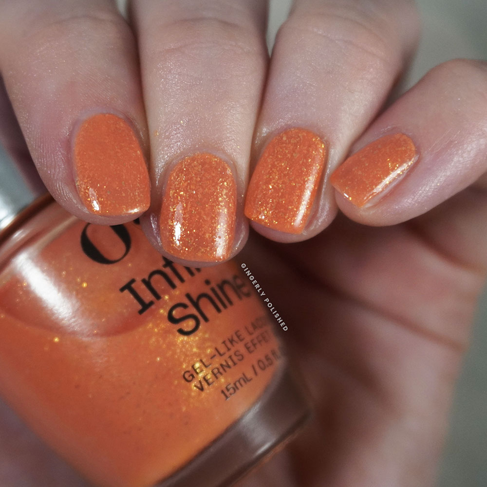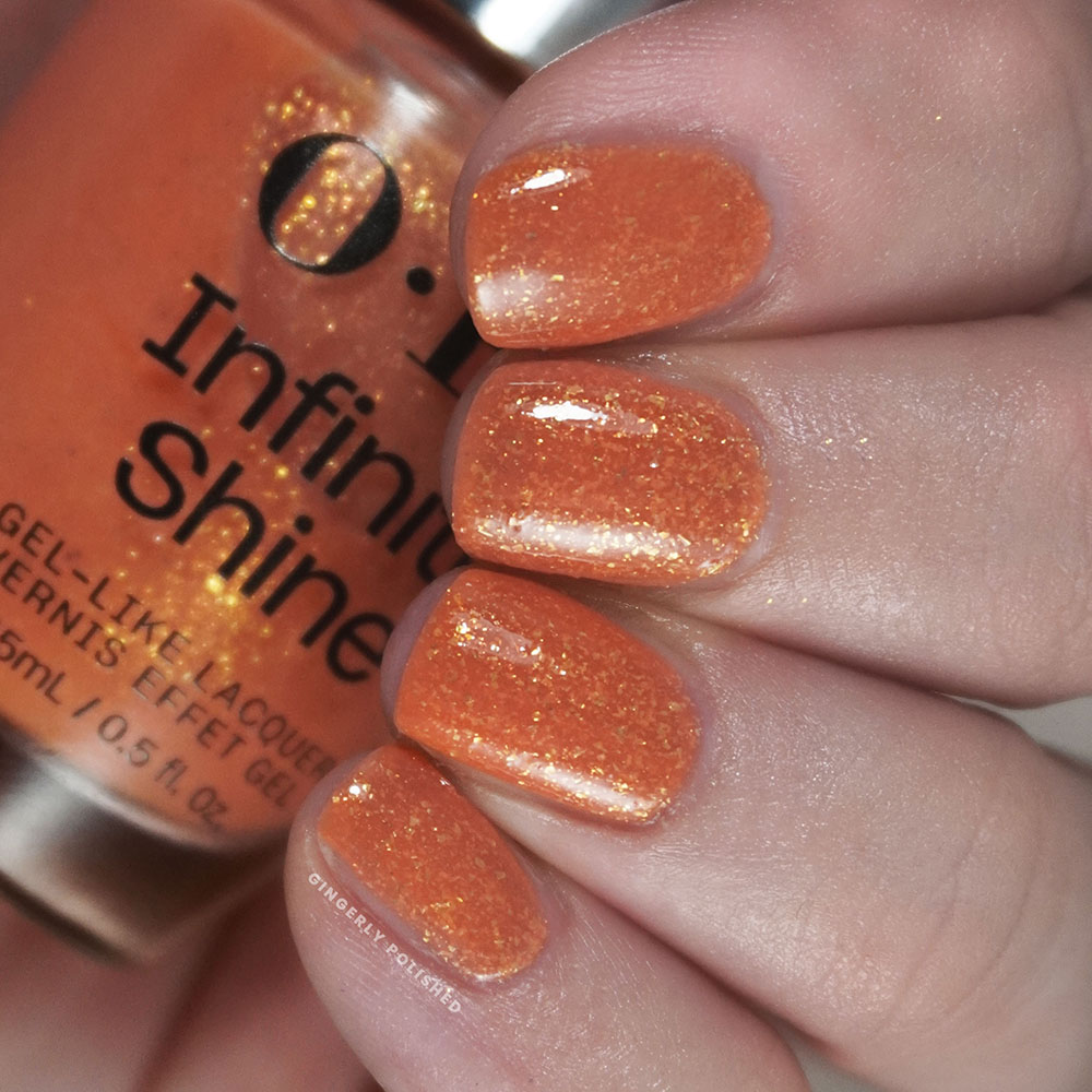 OPI thinks of their Infinite Shine line as the “next step up” from the regular lacquer formula, as indicated by its higher price. But it’s still just regular lacquer – not gel – and comes in the bottles with the silver metallic caps. OPI says it’s a longer lasting nail polish formula that “delivers up to 11 days of gel-like wear”. Again, not gel, no need to cure with a lamp. (For reference, any actual gel polish will be within an opaque bottle as it cures through UV light. Sunlight would mess with the formula. Anything within a clear bottle is absolutely not a gel formula). With my constant rate of swatching, I’m never keeping one shade on long enough so I can never speak to any sort of longevity claims from any polish brand.