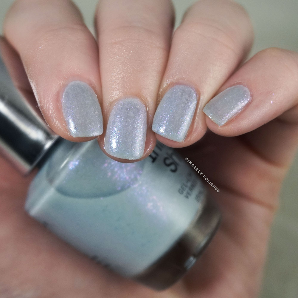 ‘From Head to Doze’ is much more icy than ‘Living the Fanta-Sea’ and maybe you just hold onto this shade for winter at this rate. In the bottle you can see some more minty green tones, but on the nails the multicolored iridescent flakes pull it back over to neutral or even cooler blue.