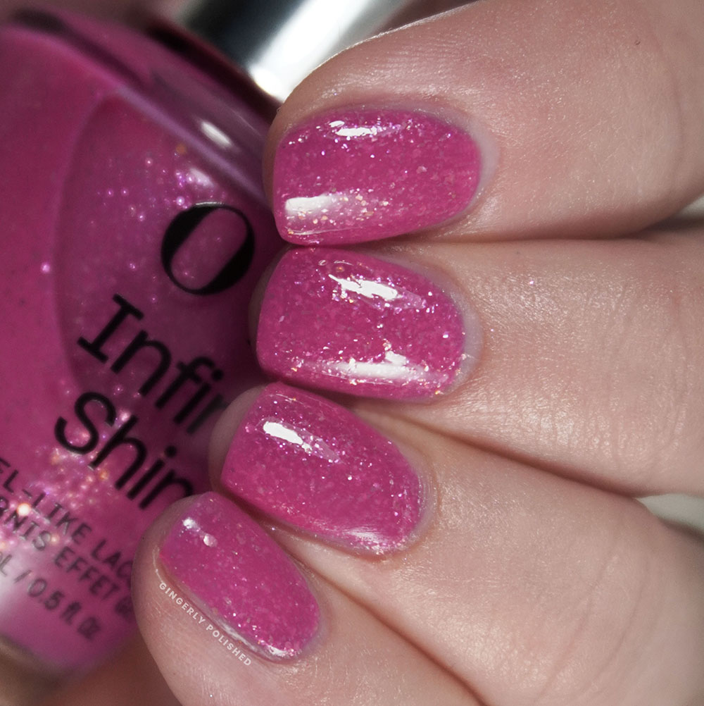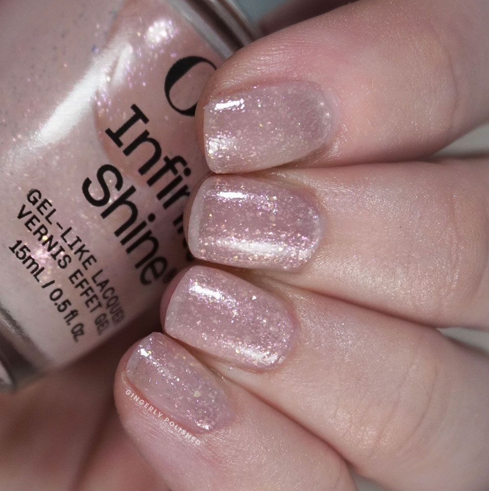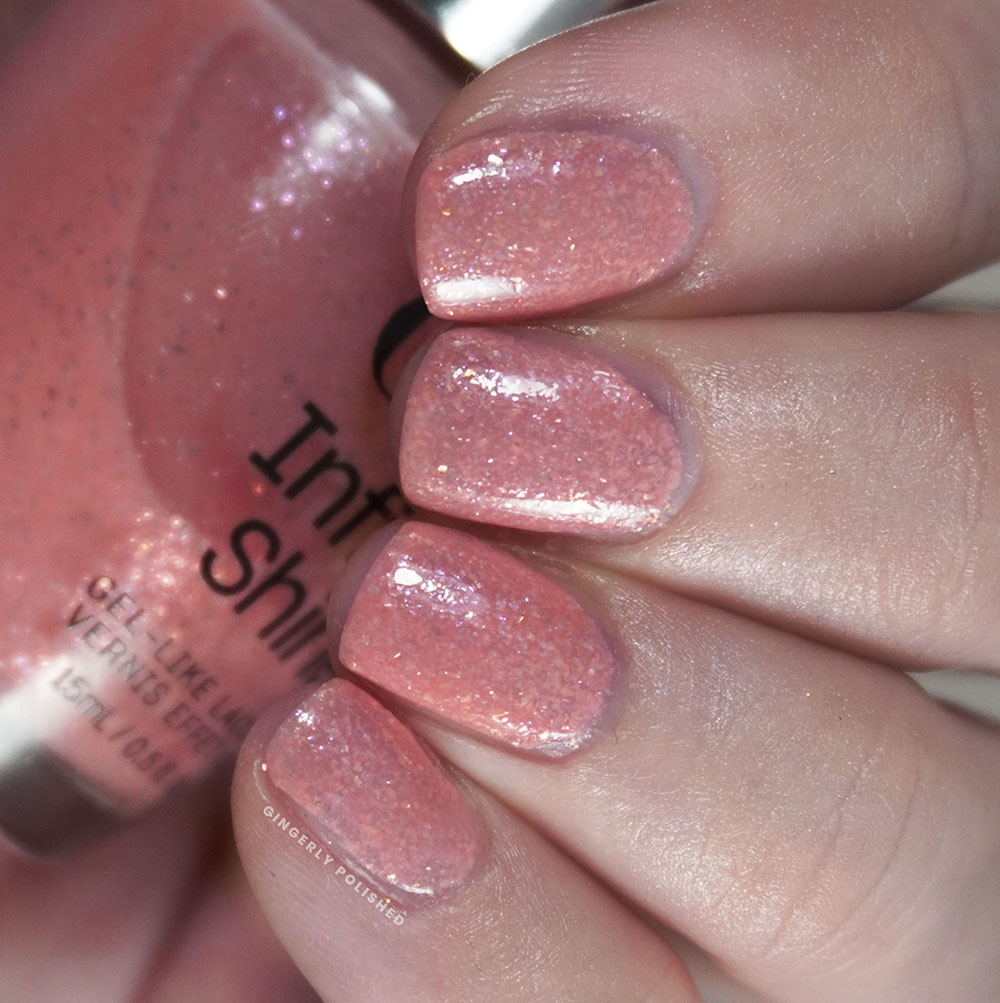 This was the next shade to have a comparison in the lacquer collection. In color, ‘Keep It Surreal’ almost slots right in between ‘Dreamsicle’ and ‘Suzi’s Pedicure Throne’, having more of those cooler pinky tones to it. It has the same amount of pigment as ‘Dreamsicle’ but again with that finer shimmer, and that’s going to be the main difference you’ll see when I’m comparing the two sets. The lacquer shades have a smaller smoother shimmer, while these Infinite Shines treat us to flakier shimmers. Both of these specific polishes have good formulas, so this duo will come down to a color and finish preference.