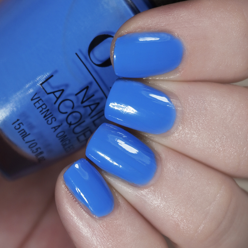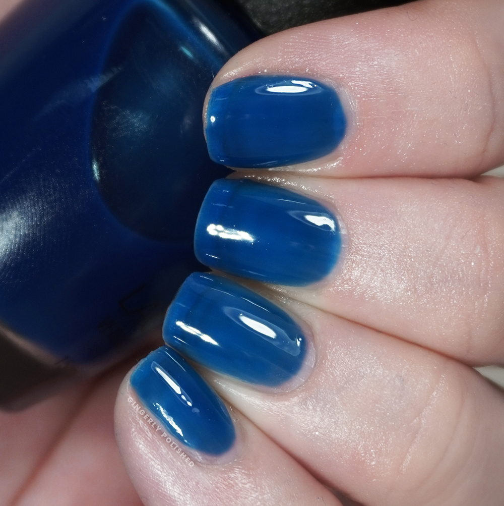 Now to bounce back to a full cream finish. This is ‘Blue Them All Away’ and it’s a bright, yet cooler toned blue shade. I want to call it a blueberry shade even though it’s absolutely not the color of blueberries and I already made a whole thing of peach above. I feel like it’s the color of “blueberry” flavor, do you know what I mean? There might even be some periwinkle tones to it, but that’s me trying to be too art school.
