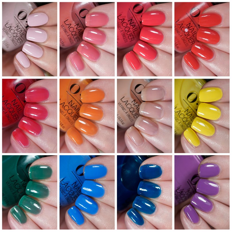Summer is quite something to be thinking about as I type this up in January, after we had days with windchills of -25°F and then a full day of constant snow. But these polishes are all still available to purchase currently and you never actually have to be limited by “seasonally appropriate” shades (and that whole thing of cleaning out the backlog). OPI’s release for Summer 2025 was called the ‘Make ‘Em Jelly’ collection, and we have 12 shades here in a bright rainbow of colors. Just like other collections of 2025, OPI technically gave us 2 collections, 12 polishes in the regular lacquer finish as well as 12 polishes in the Infinite Shine formula. They feature different colors, so I’ll review them both, starting with the regular lacquer polishes today.