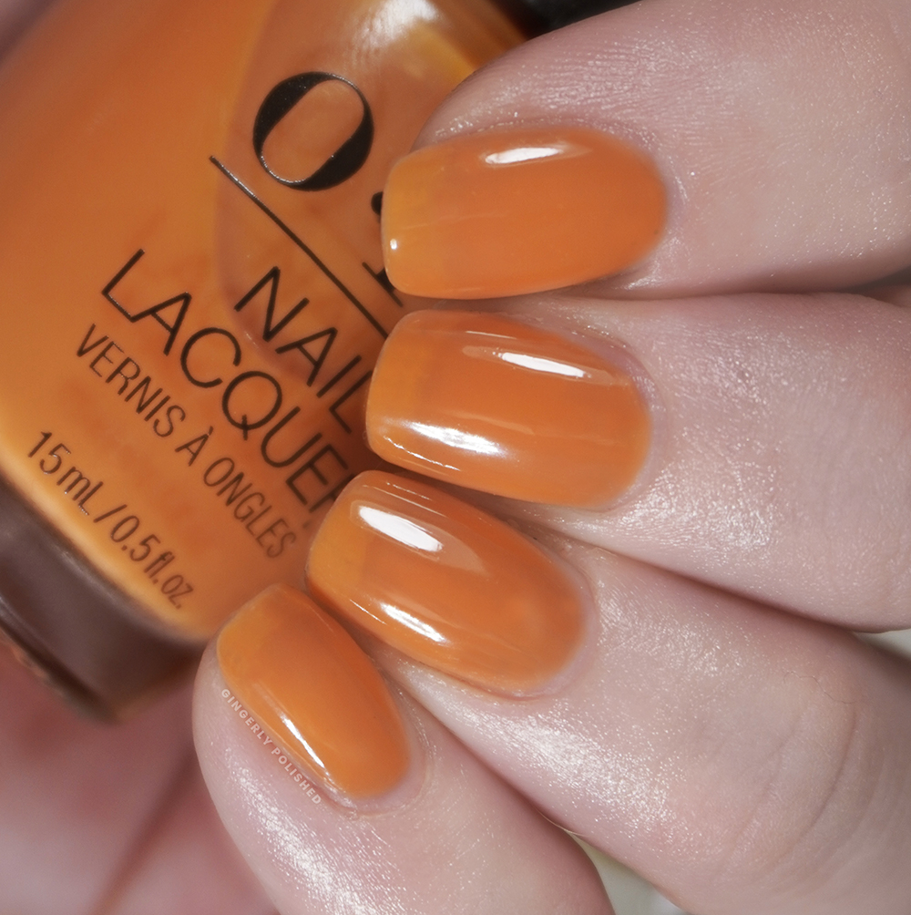 I said it’s a cream, but I did find this shade to be a touch squishier than a true cream, making that first coat more sheer than you might be expecting. But the 2nd coat comes in and really builds up that color and makes it pop. I did end up adding a 3rd to further smooth out the ridges of my nails, but most will be set with just 2 coats. That touch of jelly to the formula just helps it dry so shiny on the nails even without a top coat – I never use top coat on my swatches as I like to show exactly how they’ll dry out of the bottle. That shine is all this polish.