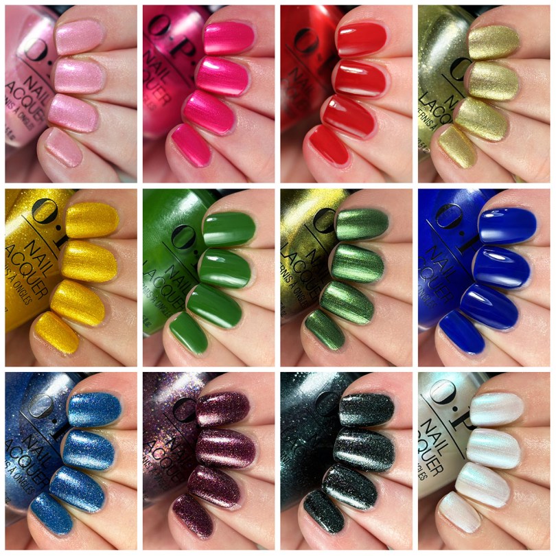 OPI has described this half as 12 soft shimmery pastels, and I find that pretty accurate overall, you know, good work OPI on describing your own product. There are a few brighter pops of color throughout, but overall these colors will run lighter in pigment.