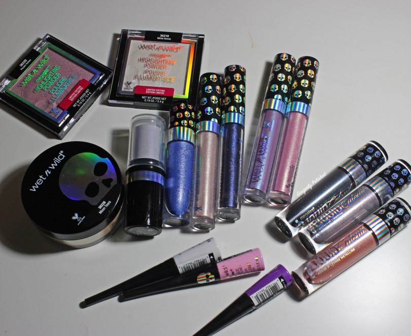 So what’re we even talking about here? Wet N Wild dropped a full collection called ‘Goth-o-Graphic’. This rides on the tails of the huge “holographic” trend that has been taking the world by storm (none of this makeup is holographic, only the packaging is lemme say that). It seemed it was in production, and then suddenly a couple weeks before it launched, Wet N Wild went crazy, promoting it as this brand new thing. I will credit them, they did really build up the hype around this and get people excited.