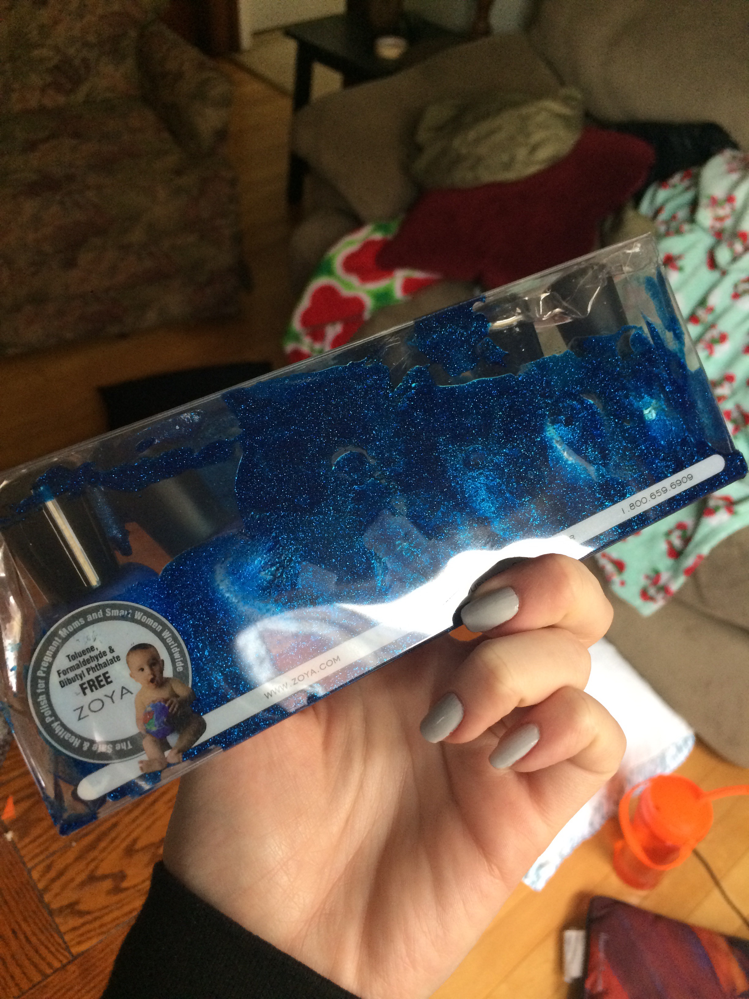I ordered this collection, along with a few other polishes in Zoya’s Black Friday sale. It shipped, it was delivered, I pulled the package out of the box, and… one of the polishes was smashed inside the package. Polish everywhere. I promptly cleaned it up, getting blue everywhere, and got right onto emailing customer service. Luckily they were so lovely, and immediately sent out another bottle of Waverly. I should have that by Friday, so I’ll be sure to update the post, and label it with Full collection when I truly have all 6.